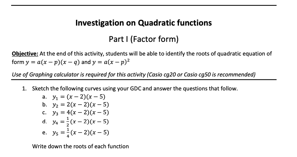 INVESTIGATION ON QUADRATIC FUNCTIONS ROOT FORM