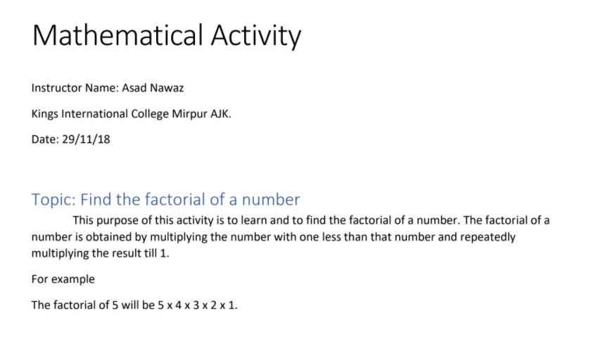 MATHEMATICAL ACTIVITY